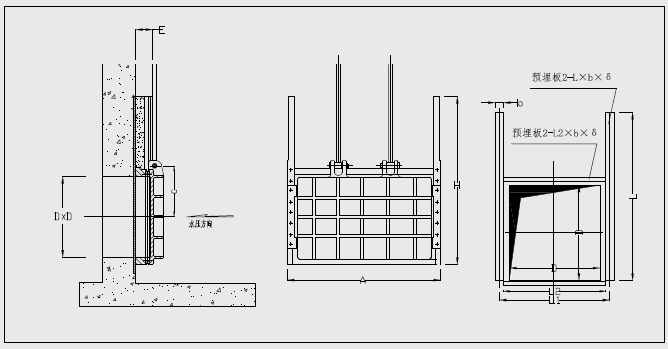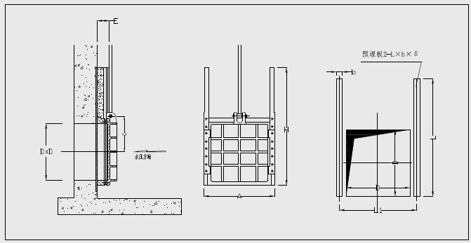 1、閘門應(yīng)按圖示位置安裝、閘板設(shè)于迎水面;